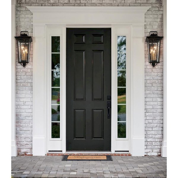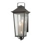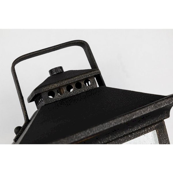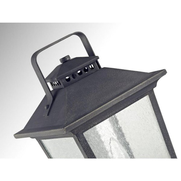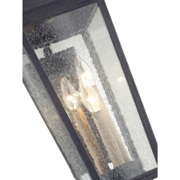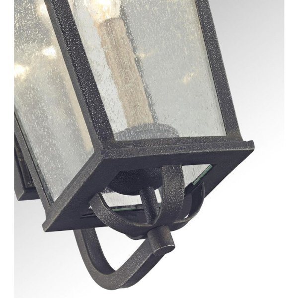 Invite rustic charm to your front entrance with this medium scale outdoor wall mount light. Crafted from hand worked iron, the tapered lantern design features seeded glass panels and houses 3 candelabra lights to brighten outdoor walkways. An aged pewter finish adds to the classic appeal of this outdoor wall fixture.