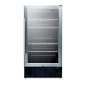 Summit's selection of built-in undercounter beverage coolers combines user-friendly convenience with elegant style for an ideal fit in any setting. The SCR1841B is an 18 in. wide all-refrigerator designed for use in residential settings. The front-breathing system allows built-in installation under counters, while the fully finished black cabinet also allows freestanding use. The reversible stainless steel trimmed door includes a factory installed lock and a professional style handle. Items can be stored on four adjustable chromes shelves in the auto defrost interior, with attractive LED lighting providing an elegant display. The digital thermostat offers intuitive temperature management.