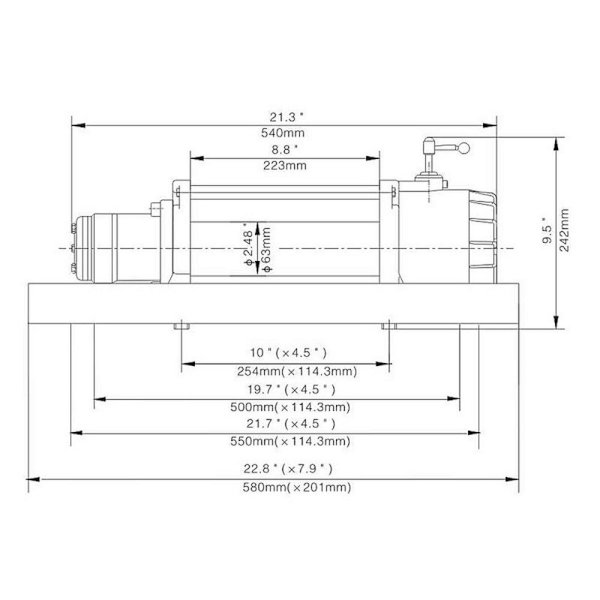 This reliable Runva 10HX hydraulic winch is ideal for water, snow, ice or mud rescue. Easy to operate, the winch pulls in both directions. The free-spooling clutch and 16,000-lb. pulley block are added benefits. Operate in a safe and effective manner with the inclusive mounting plate. The steel cable SWR tensioner will allow you to spool the winch cable onto the drum in a consistent manner with no overlap areas.