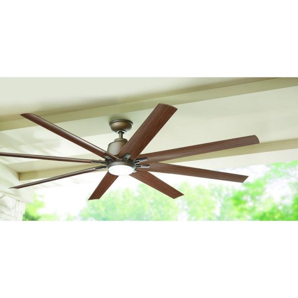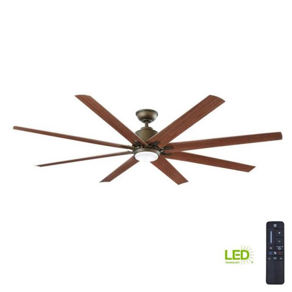 The Home Decorators Collection Kensgrove 72 in. Espresso Bronze ceiling fan is great for large areas and lofts. With its 8-blades it will push out 9,330 CFMs for maximum cooling. The dome style light kit with frosted opal glass includes a 14-Watt LED Samsung light source and is set at 3000K temperature (warm white). The energy efficient DC motor will start saving you on energy expenses while running on high on only 31-Watt. Also this DC motor has 9 speeds which are three times as many as traditional ceiling fans have. The hand held remote control will control the dimming and speed function, battery included.