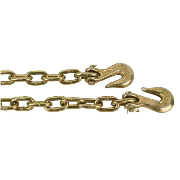 This 5/16 in. x 20 ft. Grade-70 Tow Chain is a high-strength carbon steel chain that is ideal for securing cargo, recovering vehicles and removing tree stumps. Boasting heavy-duty welded construction, the high-quality chain's yellow zinc finish offers lasting weather resistance. It includes clevis grab hooks at each end. With a working load limit of 4,700 lbs., this chain meets transportation regulations. It should not be used for overhead lifting.
