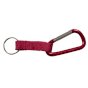 The Hillman Group Carabiner Key Clip with Strap is constructed of anodized colored aluminum. It features a red color and a split-ring design. Ideal for carrying keys and membership cards.