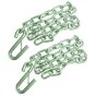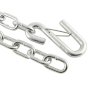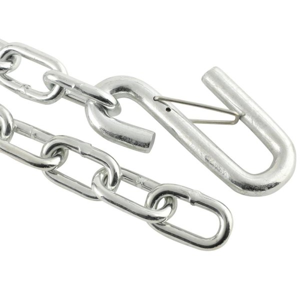 Designed to connect a trailer tongue to the towing vehicle, this Trailer Safety Chain is ideal for class I or II trailer applications. Made from zinc-plated steel, each chain is rust and corrosion resistant. Do not use this product for overhead lifting, support of human weight or athletic equipment, or other situations where personal safety or valuable property can be endangered. The working loads shown should never be exceeded. Additional care must be exercised when using this product under shock (stress, jerk) conditions. These conditions can reduce working loads by as much as 33%. Never stand in line with rope under tension; such a rope, particularly nylon rope, may recoil (snap back). Never use this product to secure large flat surfaces or objects, which could "airplane" or dislodge through buildup of air pressure. All ropes should be replaced if signs of wear, such as broken fibers, are apparent. Misuse can result in serious injury or death.