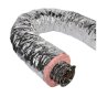 The Master Flow 6 in. x 25 ft. Insulated Flexible Duct R8 Silver Jacket is used in standard Heating and Air Conditioning (HVAC) systems and some venting applications. The duct has R8 insulation which contains 50% more insulation than the standard R4.2 product. This additional insulation provides greater thermal efficiency to save energy. The product is also covered in a heavy duty, silver jacket for durability. The duct is ETL listed, meeting the UL181 standard.