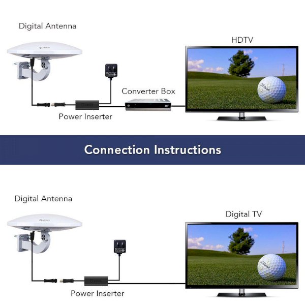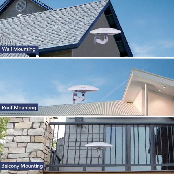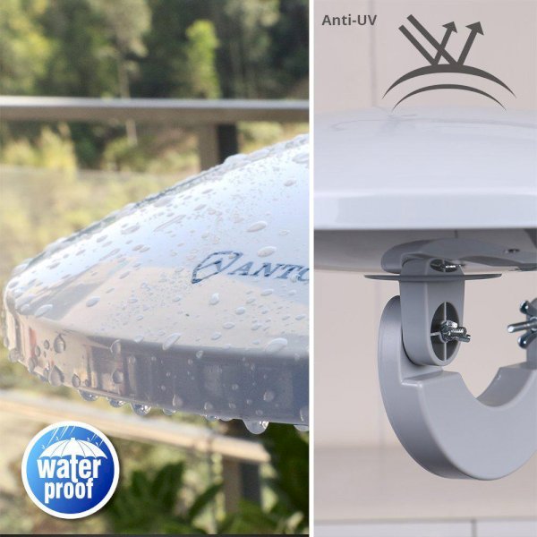 Cut the cord and watch Free local TV with the professional grade PL-414BG UFO Outdoor HDTV Smartpass Amplified Antenna from ANTOP. The PL-414BG HDTV Antenna with new generation digital technology is designed to match similar gain of traditional bulky, unsightly mechanical antennas. It features a Smartpass Amplified 65-mile diameter signal reception range and an Omni-directional reception pattern to receive free local Over-the-Air digital TV signals, from networks such as ABC, CBS, NBC, PBS, Fox, Univision and others. The Smartpass Amplifier, an exclusive ANTOP technology, uses an all-in-one design allowing easier connection while delivering the correct balance between short and long range reception. Also included is a 4G LTE Filter to block out unwanted 3G and 4G wireless signals. The 414BG UFOs design, 15-inch diameter in size, is aesthetically pleasing and suitable to match a wide range of home exterior styles. Its UV coating, weather resistant finish and creative design make the 414BG perfect for home exterior installation: wall, roof and balcony. The UFOs compact size (15 in. Dia) allows you to position the antenna in an attic and is also suitable for RV usage. The 414BG supports HDTV, 1080P TV and 4K ULTRA HD and is compatible with TV converter boxes or digital TVs. ANTOP, an antenna industry leader since 1980, offers a full line of outdoor and indoor digital HDTV antennas.