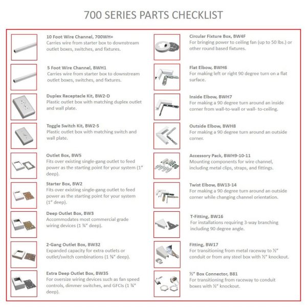 The Legrand Wiremold 700 series raceway is ideal for surface mounting small amounts of electrical wiring or communication cables. Surface metal raceway allows you to add fixtures and outlets without disturbing the drywall, plaster or insulation in your home. It is also ideal for adding wire when you can't go into the wall, such as on concrete foundations or brick walls. Combine with other 700 series connectors, fittings, and channel to ensure you have the right customization for every project.