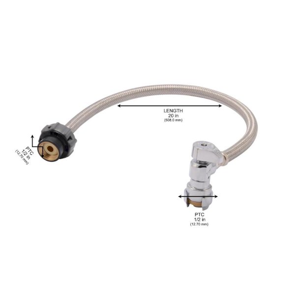 The 1/2 in. SharkBite Click Seal Faucet Connector is the easiest way to install a new Faucet Line. The valve is perfect for potable water and hydronic applications where a shut-off is needed. Using SharkBite fittings is the easiest way to join copper, CPVC or PEX pipe in any combination with no soldering, clamps, unions or glue. Just insert the pipe and the stainless steel teeth bite down and grip tight, while a specially formulated O-ring compresses to create a perfect seal. Disassembly is just as fast using the simple disconnect tool so fittings and valves can be easily changed and reused. They can even be rotated after assembly for easier installation in tight spaces. SharkBite Fittings are certified for potable water supply and hydronic heating applications. The "Click" Seal technology also means there is no need for tools, simply turn the Click Seal nut until it clicks and you have a secure seal.