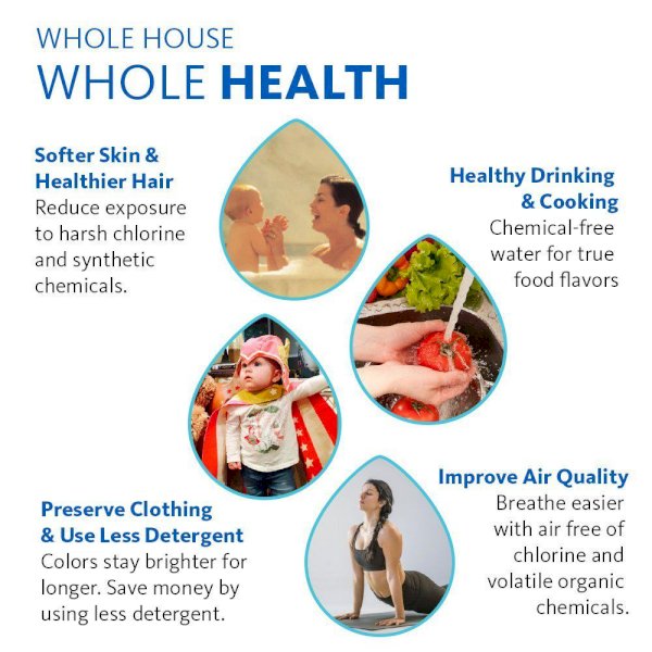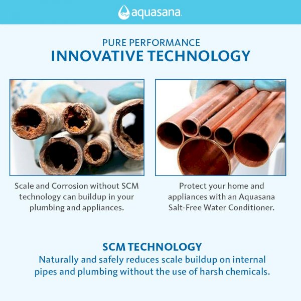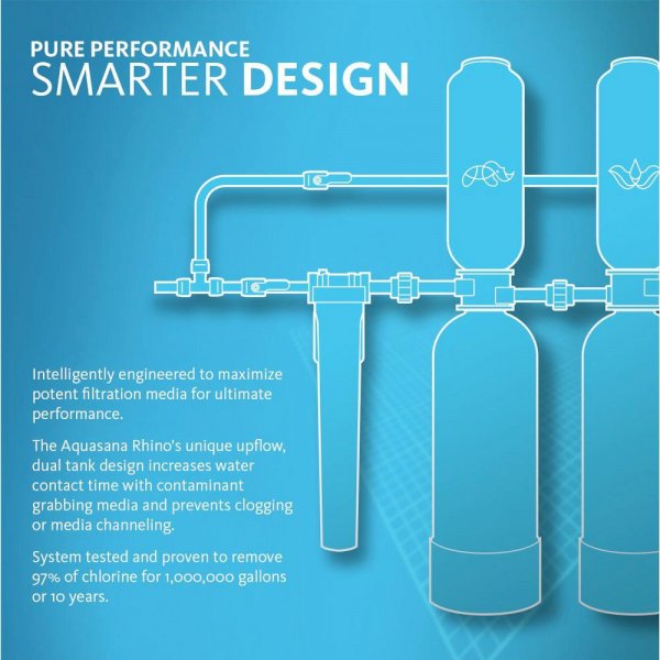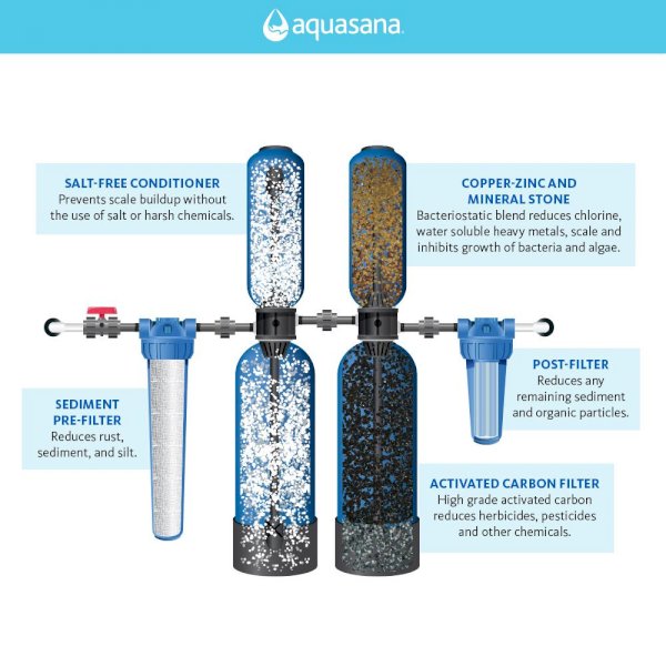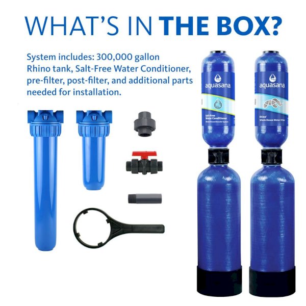 Protect your home and appliances and drink healthier, cleaner water with this bundle. Rated for up to 300,000 Gal. , the system reduces more than 97% of chlorine present in tap as well as reducing other harmful contaminants such as pesticides, herbicides, rust, sediment, water-soluble metals and industrial solvents. Chlorine and volatile organic chemicals (VOCs) can evaporate in shower steam, contaminating the air you breathe. Breathe easy with cleaner, healthier air. Unlike salt-based softeners, the Aquasana Salt-Free Water Conditioner won't demineralize your water by chemically removing minerals nor will it put excess salt waste or chemicals into our environment.