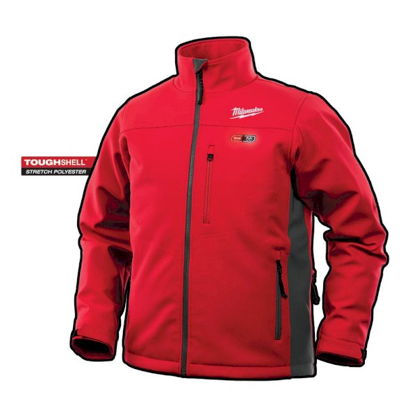 The 3XL red heated TOUGHSHELL jacket kit is powered by the M12 REDLITHIUM battery. The heated jacket's carbon fiber heating elements create and distribute heat to the chest, back and front hand pockets. A single touch LED controller heats up the battery heated jacket to three heat settings. The MILWAUKEE heated jacket kit's Quick-Heat funtion heats up three times faster than previous jackets and market competitors. The TOUGHSHELL stretch polyester jacket mateiral delivers five times longer jacket life than previous MILWAUKEE softshell heated jackets. The durable material also provides wind and water resistance to survive the elements whether on the worksite or enjoying the outdoors. This kit comes with one heated jacket, an M12 battery and compact charger and power source.