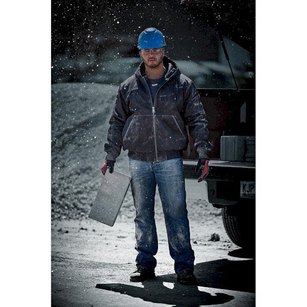 Engineered to battle the jobsite and survive the elements, Milwaukee’s Hooded Jacket is built for tradesman who can’t let cold slow them down. Focused on providing reinforcement in areas where traditional workwear fails, GridIron 900 Denier Ripstop Polyester Outlasts 12 oz. cotton duck by 3X against abrasion and tearing. Combined with large riveted and reinforced utility pockets and a tarnish resistant metal zipper, this jacket won’t quit before the day is over. FreeFlex Mobility Gussets across the back and a fitted hood designed to provide full range of vision make sure that the Milwaukee Hooded Jacket won’t get in the way of the work on a cold weather job.