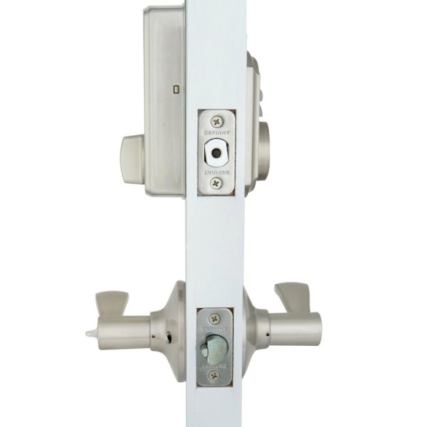 Adding security and style for your family and property is easy with this reliable electronic deadbolt and entry lever combo set. Defiant keyless entry technology brings peace of mind without the worry of losing keys. Its user-friendly features offers ease of installation, operation and customizable programming and is backed by a 1-year electronic and lifetime mechanical warranty. And the stylish Naples passage lever allows for easy installation on either a left or right handed door, with only a Phillips screwdriver when replacing an existing knob or lever.