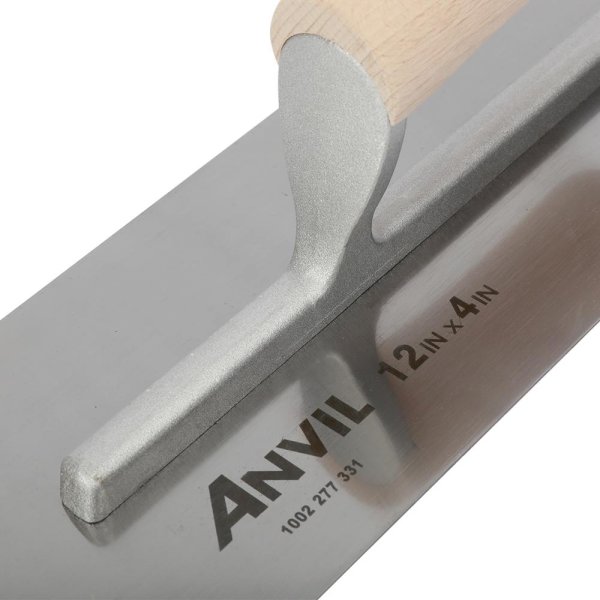 This 12 in. x 4 in. Concrete Finishing Trowel was expertly designed for the trade professional and made of hardened and tempered spring steel for durability. The blade is permanently locked to the mounting by stainless steel rivets. Constructed with a tremendously strong yet lightweight aluminum alloy mounting, this trowel features an ergonomic, soft-grip handle for user comfort.