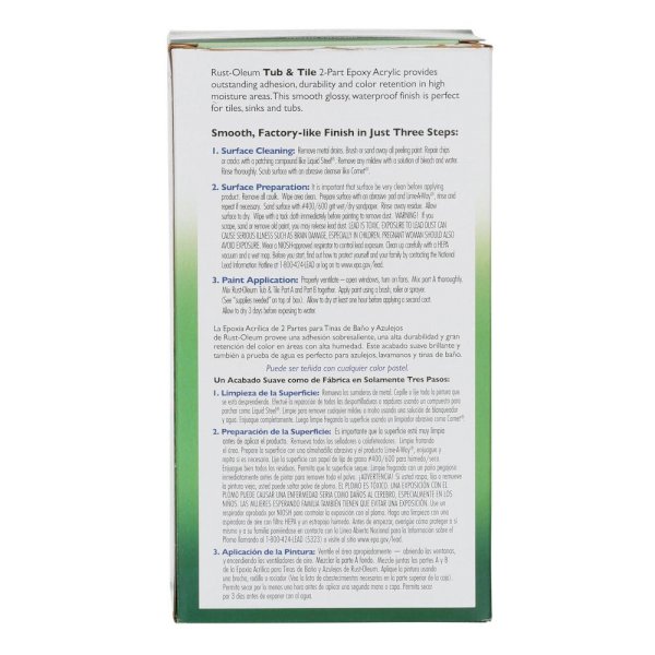 Rust-Oleum 1 qt. White Tub and Tile Refinishing Kit is a two-part epoxy acrylic designed to rejuvenate ceramic and porcelain surfaces like tubs, sinks and showers in just minutes. Specially formulated to provide excellent adhesion, durability and color retention in high moisture areas. It applies a smooth, porcelain-like finish that resists mildew growth for long-lasting protection and beauty.