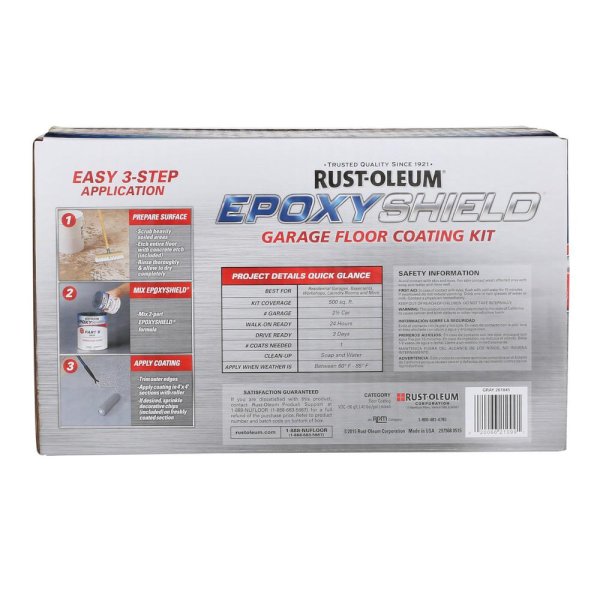Rust-Oleum EpoxyShield Garage Floor Coating Kits beautify and protect your garage floor. EpoxyShield Coatings are specially formulated to provide superior adhesion and durability. Coatings are easy to apply and provide professional-looking results.