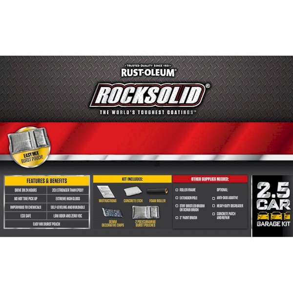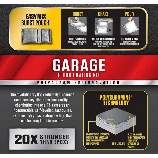 Virtually VOC free, this Polycuramine Car Garage Floor Kit is 20 times stronger than normal epoxy. The coating resists salt, oil, gas and other chemicals. Perfect for workshop floors, garage floors and other interior concrete surfaces.