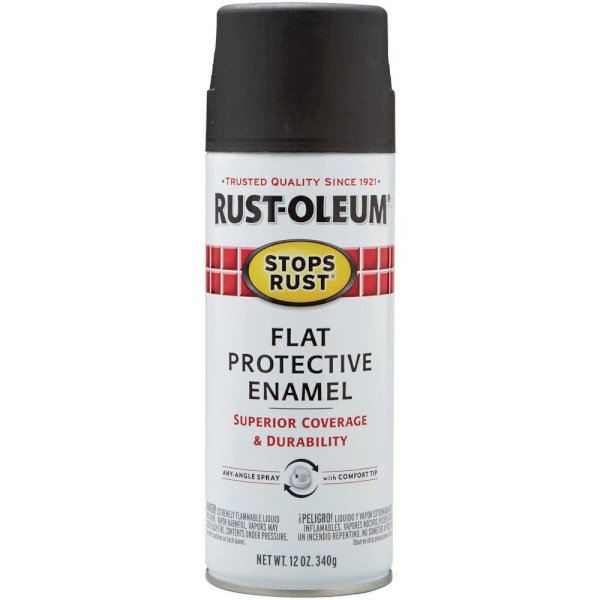The Rust-Oleum Stops Rust 12 oz. Protective Enamel Spray Paint has a corrosion- and chip-resistant formula that also resists fading. This paint dries in approximately 120 minutes and provides up to 25 sq. ft. of coverage. Featuring a matte finish and black color, this rust-preventive paint is great for your painting needs.