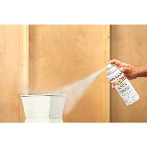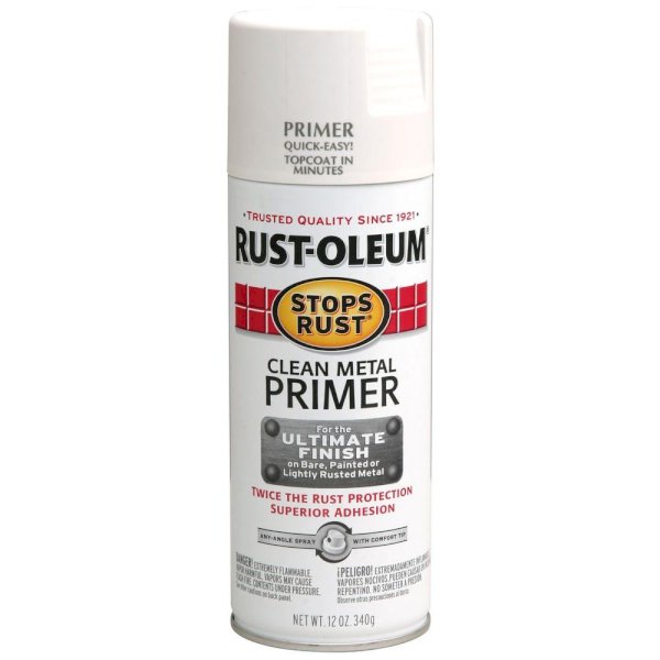 The Rust-Oleum Stops Rust 12 oz. Clean Metal Spray Primer is designed for use on lightly rusted metals and works great on bare and previously painted metals. This primer can be used both indoors and outdoors and provides coverage for up to 15 sq. ft. To use, apply directly over the rust to provide great adhesion for finishes. The primer dries in approximately 120 minutes.