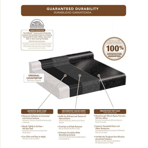 Dirty, dingy or dated countertops? Use this kit to update them with a granite look. It is an easy-to-use countertop paint in desert sand that eliminates the cost and stress of a total countertop replacement. This refinishing kit requires no special skills or tools. With its quick, hassle-free application, it completely transforms the appearance of your countertops in just one weekend. With this kit, you can update your kitchen countertops, bathroom countertops or any others in your home with style. The countertop kit covers up to 50 sp. ft. and is constructed with tough silicone epoxy to stay clear over time. This product is suitable for DIYers.