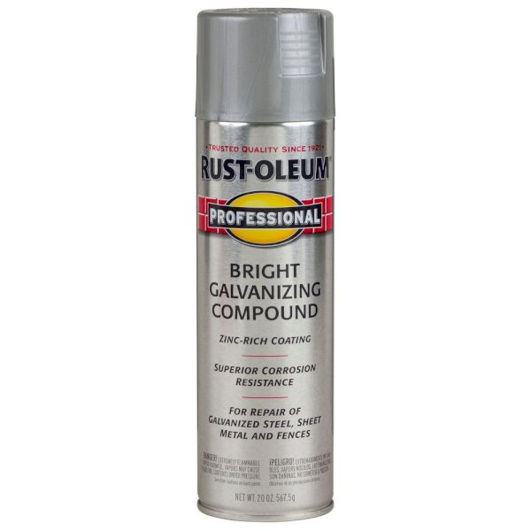 Rust-Oleum Professional Galvanizing Compound Spray applies galvanized finish to galvanized and sheet metal. Use on wrought iron and spot-welded metal, gutters, chain-link fences and more. No top coat needed.