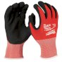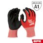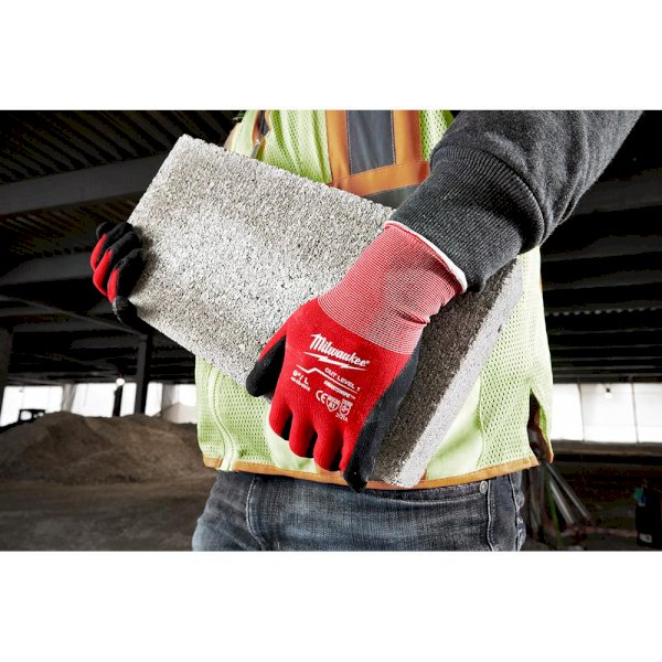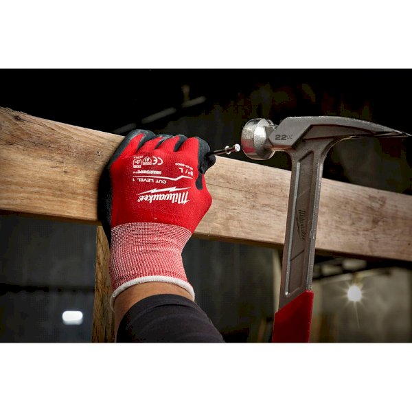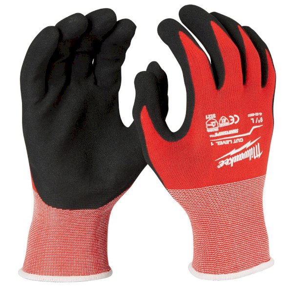 The MILWAUKEE 6-Pair Pack of Large Cut Level 1 Nitrile Dipped Gloves have SMARTSWIPE index fingertips that provide full access to touchscreen devices without having to remove the gloves. The nitrile dipped work gloves are designed to provide ultimate durability, all-day comfort and best-in-class dexterity for handling small objects. The nitrile dipped gloves have a textured palms for best in class grip performance. The work gloves are made of a nylon and lycra blend that provides all day comfort and wick away moisture.