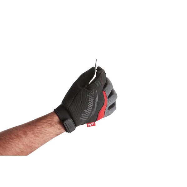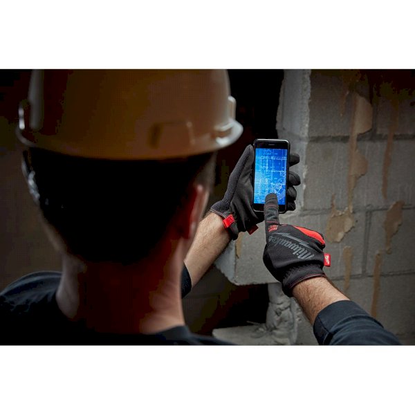 Milwaukee Performance Work Gloves are designed to provide Ultimate Durability and All Day Comfort. Featuring Smartswipe fingertips, knuckles and palms designed to allow the use of touch screens, and high dexterity fingertips to provide precision when handling small objects. A reinforced thumb seam provides enhanced durability and the hook and loop closure ensures a secure fit. In addition, a breathable lining and built-in terry cloth sweat wipe ensure the gloves remain comfortable enough to wear all day.
