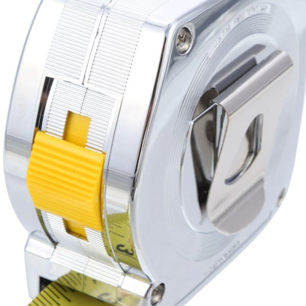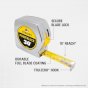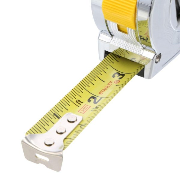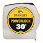 The Stanley 30 ft. Tape Measure is made with metal and is covered with a Mylar polyester film for durability. There are 16 in. and 19.2 in. stud-center markings on the tape blade for framing purposes. The positive blade lock will keep the tape in place while taking measurements.