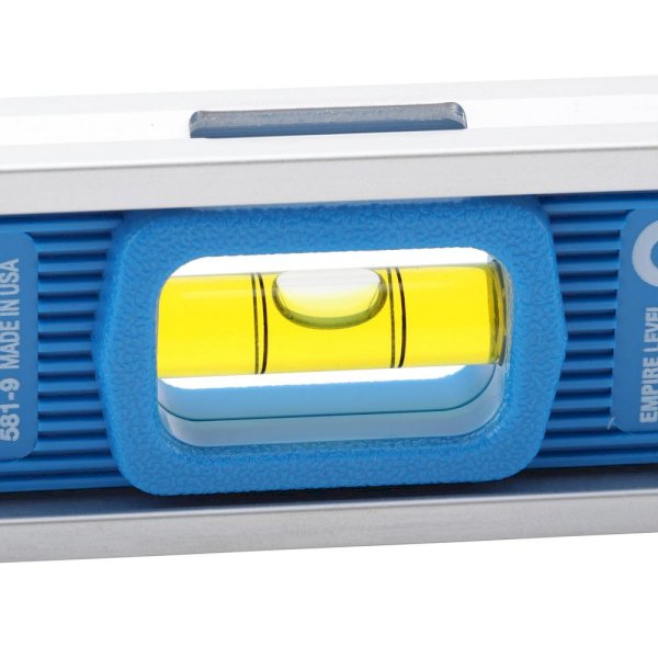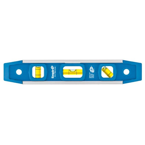 The Empire 9 in. Torpedo Level features durable acrylic vials to help provide plumb, level and 45° level readings with an accuracy of up to 0.001 in. The top-read window helps make it easy to read the vial from over the level. The solid aluminum level frame provides durability and the magnetic edge allows for hands free work.
