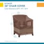 Fits patio chairs 36 in. W x 37 in. D x 36 in. H. These covers are the "Ultimate" because they are ideal for use in harsh weather and strong wind conditions. Duck Covers Ultimate Series patio furniture covers are designed to protect patio furniture from dust, dirt, sun, rain and heavy snow. Manufactured using a combination of high-strength polyester top panel, plus innovative, multi-layer, breathable side panels to help eliminate condensation. The multi-layer, breathable side panels eliminates the need for vents and provides additional cover height, unlike shorter competitive covers which offer less protection. High-strength polyester base for added durability. Mocha Cappuccino color. 2-year limited warranty has you covered. Migrate to the best patio furniture covers today.