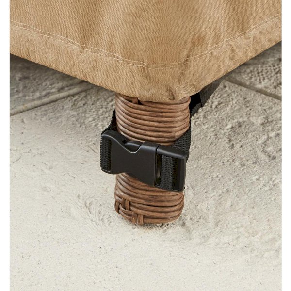 This Patio Chaise Cover features a weather-resistant design that protects outdoor furniture from dust, dirt, sun, rain and heavy snow for year-round use. The heavy duty Rip-Stop fabric is durable and resists ripping and tearing to protect your patio furniture for years to come. With elastic and adjustable buckles on the bottom straps, these quickly secure to the furniture legs, so your cover stays on during the windiest of days. Handles on the cover offer easy fitting and removal. This cover fits up to 80 in. L x 35.5 in. W x 16 in. H.