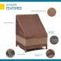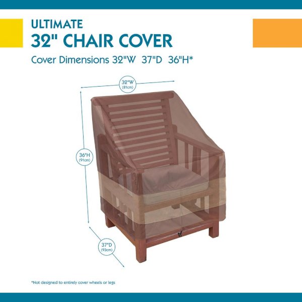 Fits Chairs up to 30 in. wide. These covers are the "Ultimate" because they are ideal for use in harsh weather and strong wind conditions. Duck Covers Ultimate Series patio furniture covers are designed to protect patio furniture from dust, dirt, sun, rain and heavy snow. Manufactured using a combination of high-strength polyester top panel, plus innovative, multi-layer, breathable side panels to help eliminate condensation. The multi-layer, breathable side panels eliminates the need for vents and provides additional cover height, unlike shorter competitive covers which offer less protection. High-strength polyester base for added durability. Mocha Cappuccino color. 2-year limited warranty has you covered. Migrate to the best patio furniture covers today.