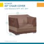 Fits Chairs up to 38 in. wide. These covers are the "Ultimate" because they are ideal for use in harsh weather and strong wind conditions. Duck Covers Ultimate Series patio furniture covers are designed to protect patio furniture from dust, dirt, sun, rain and heavy snow. Manufactured using a combination of high-strength polyester top panel, plus innovative, multi-layer, breathable side panels to help eliminate condensation. The multi-layer, breathable side panels eliminates the need for vents and provides additional cover height, unlike shorter competitive covers which offer less protection. High-strength polyester base for added durability. Mocha Cappuccino color. 2-year limited warranty has you covered. Migrate to the best patio furniture covers today.