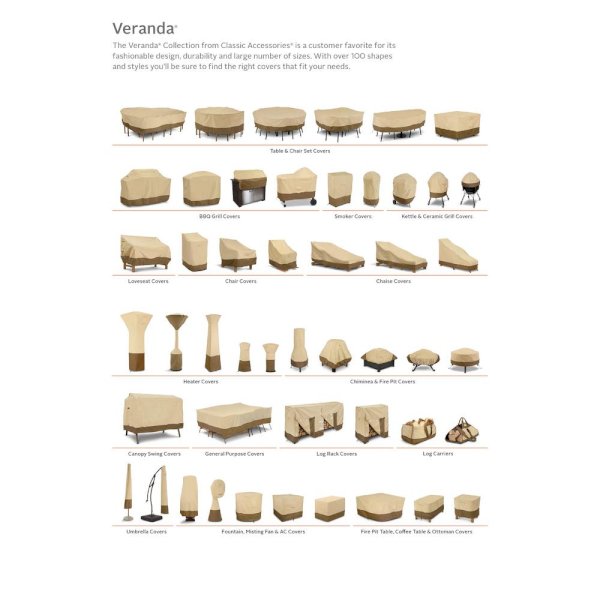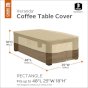 This strong and fashionable coffee table cover gives big cover protection to coffee tables. Designed for small tables up to 48 in. long x 25 in. wide and 18 in. high, thick and strong fabric provides superior protection against rain, snow, sun, dirt and leaves. As with all Veranda covers, beauty is more than skin deep. Click close straps secure quickly to the table legs so your cover stays on during windy days.