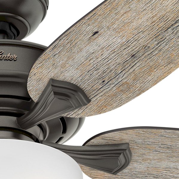 The Channing Easy Install with new HunterExpress features is one of the easiest fans you will ever install. It has 90% fewer parts than most fans and comes with Snap-On blades that do not require any screws to attach them. The included light kit is just as easy to install with its turn and lock design which also eliminates the need for screws. The Channing Easy Install also comes with a pre-installed remote receiver that includes a reverse function that can be activated via pushbutton from the included handheld remote. The remote also has a dimming feature for use with the included dimmable LED lamps. With its Easy Install HunterExpress features, beautiful finishes and stylish fan blade choices the Channing Easy Install is sure to look great in any decor.
