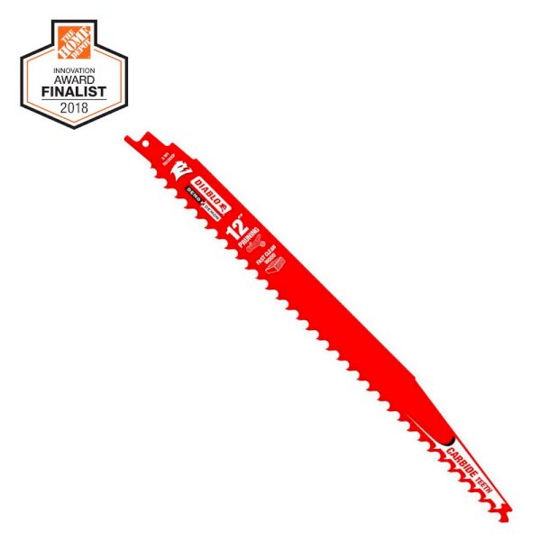 Diablo's new Demo Demon Carbide pruning and fast clean wood blades feature an aggressive carbide tooth geometry for an unmatched 50 times longer cutting life, faster cuts and increased productivity in pruning and clean wood cutting applications. These industry first carbide blades are designed with large gullets and a strengthened, oversized blade body for fast chip removal in extreme cutting applications. In addition, these radical blades feature Perma-Shield non-stick coating to prevent gumming and friction for fast, effortless cuts in some of the toughest wood cutting scenarios.
