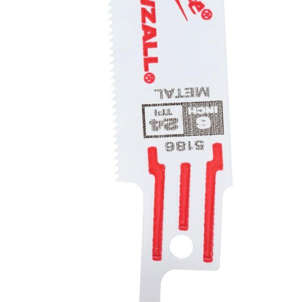 These Thin Kerf SAWZALL Reciprocating Blades are fashioned with Tough Neck ribs designed to strengthen the blade tang and minimize breakage, giving your machine superb metal-cutting ability. Double Duty tooth construction makes these 6 in. 24 TPI blades highly resilient in rugged applications, delivering straight, controlled cuts on the stiffest metals. A thin body and short profile deliver fast, flexible cuts on beams, pipes, bolts and more.