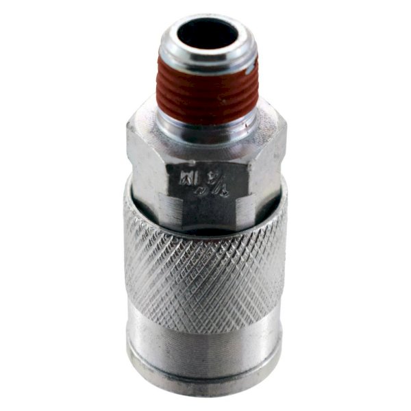 The Husky 1/4 in. x 1/4 in. NPT Male Industrial Steel Coupler eliminates coupler confusion. The durable zinc-plated steel body resists corrosion and features one 1/4 in. snap-in and one 1/4 in. screw-on fitting. The coupler is a must have for a quick fix.