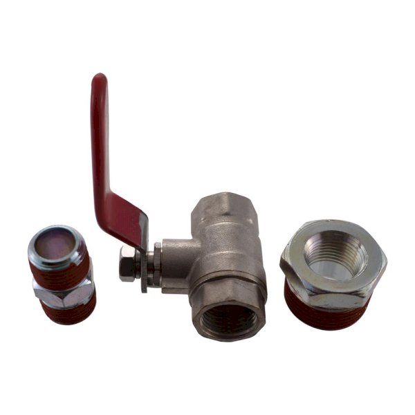The Husky 3-Piece Vertical Air Shut-Off Kit includes adapters that connect air compressors with 3/4 in. NPT female ports to standard 3/8 in. hose or piping. Constructed from durable brass with a steel ball and Teflon seals, the kit includes a quarter-turn handle that quickly turns air on and off. The high-capacity airflow design reduces pressure drops for better tool performance.