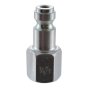 The Husky 1/4 in. NPTF Female Auto Plug is designed to connect components to an air compressor. The plug is crafted with heat-treated steel to help ensure strength and is plated in zinc to help prevent corrosion. For best results, it should be used with pressures at or below 155 psi.