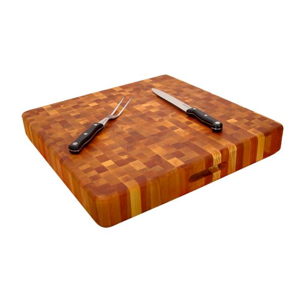 End-grain yellow-birch construction helps make the Catskill Craftsmen Super Slab with Finger Grooves a tough, professional-grade wooden chopping block. This reversible block is 3 in. thick with a 20 in. x 20 in. cutting surface for versatile use and functionality. Finger grooves help you move and place the block conveniently.