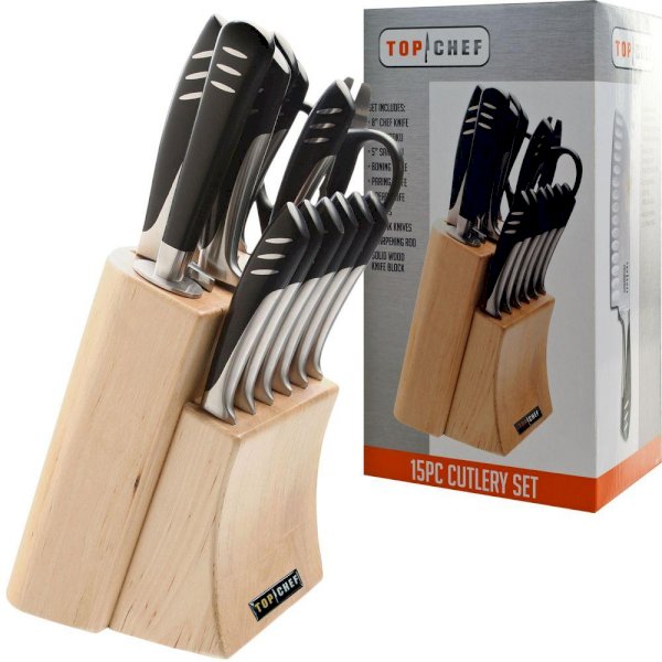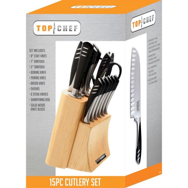 Included | Boning Knife,Bread Knife,Chef's Knife,Knife Block,Paring Knife,Santoku Knife,Sharpening Steel,Steak Knife |