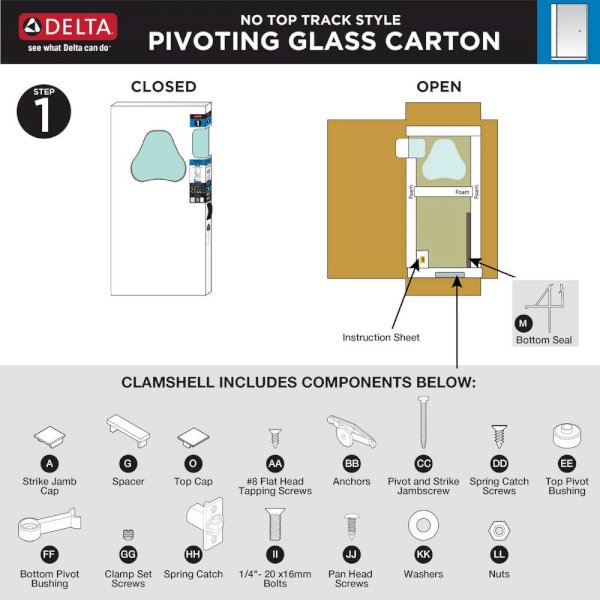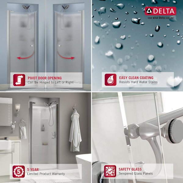 With these beautiful shower doors, you can create your own custom look in 3 easy steps. Choose your glass. Choose your track assembly kit and select your choice of a matching handle or knob. 5 year limited warranty.