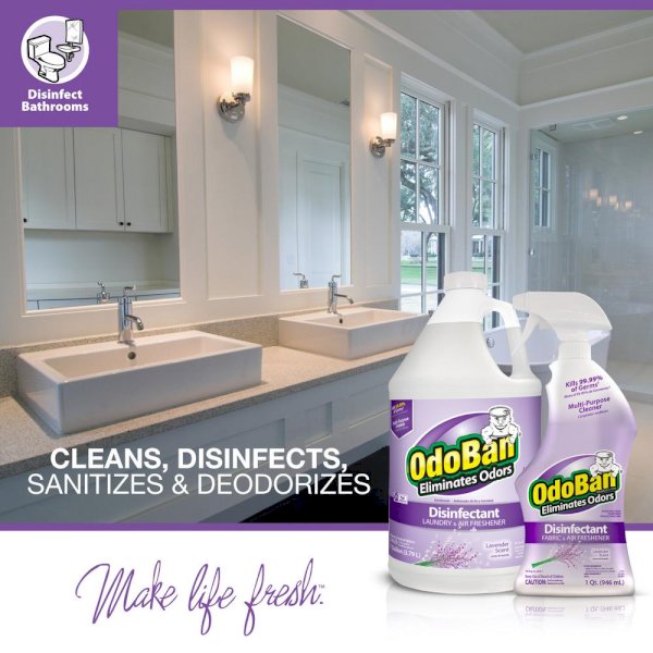 OdoBan Odor Eliminator cleans, disinfects, sanitizes and deodorizes pre-cleaned hard, nonporous household surfaces. OdoBan eliminates unpleasant odors on washable surfaces such as upholstery, carpets, bedding, showers, walls and floors while leaving a fresh scent. This industrial liquid odor eliminator leaves no residue and has a variety of uses.