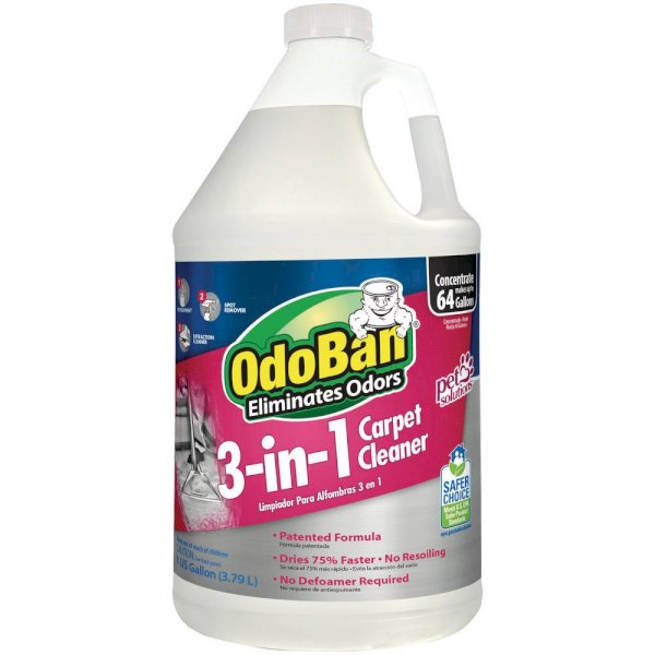 The OdoBan 3-in-1 Carpet Cleaner was specially formulated to serve as 3 products in 1: a traffic lane pre-treatment for sprayer or bonnet cleaning applications, a spot remover and an extraction cleaner. Just mix with water according to the directions for the desired application. Each dilution safely cleans carpets without the need for detergents and harmful chemicals, eliminating the need for de-foamer and additional rinsing agents.