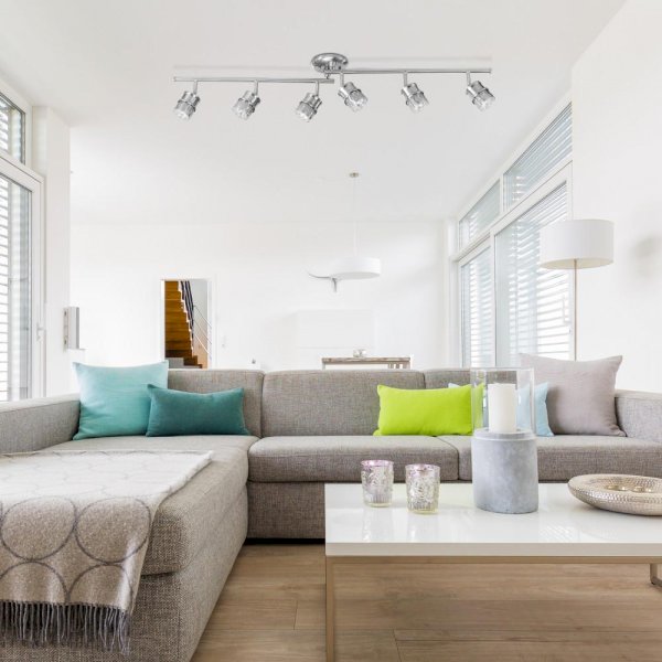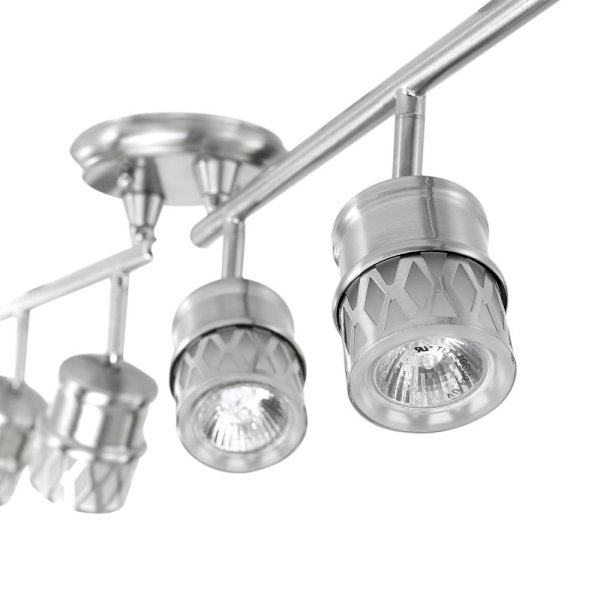 Globe Electric’s Kearney Collection updates any space with style. The 6-Light Foldable Track Lighting with a brushed nickel finish and white glass shades is ideal for use on ceilings in kitchens, bathrooms, bedrooms, living rooms, hallways, dining rooms – anywhere you want the ability to direct light exactly where needed without multiple light fixtures. Each of the six track heads are independently adjustable so you can direct and focus your light where you need it the most. The brushed nickel finish and white glass breathes fresh life into an otherwise classic design. Includes all mounting hardware for quick and easy installation and six 50W equivalent GU10 halogen light bulbs.