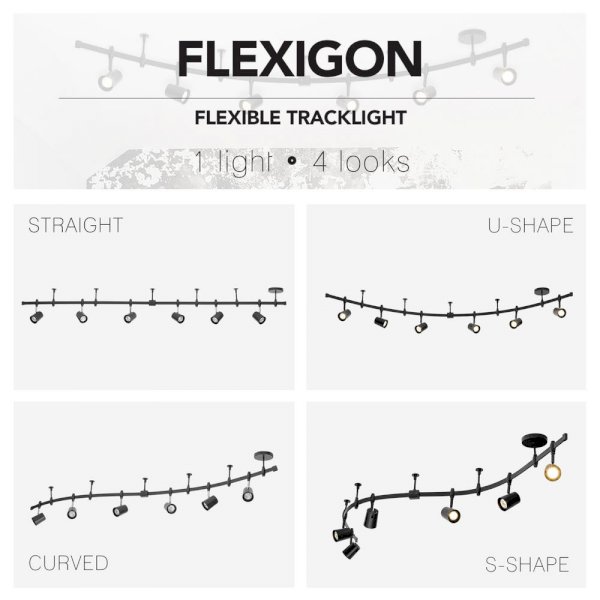 With the popularity of functional spaces and industrial interiors, track lighting is a key essential to interior illumination. Using a single electrical box, the Flexigon Track Lighting Kit can be configured into the coolest arrangements making it an easy way to brighten up your room by adding more light with a single electrical install. The moveable canopy allows you to place it wherever you see fit and the six-track heads are moveable and adjustable to help direct light wherever you need it most. Plus, this light can be installed in any room - shape it in a u-shape for your bedroom, in an s-shape for your kitchen or even place two parallel to each other in your living room to create a stellar additional layer of light.