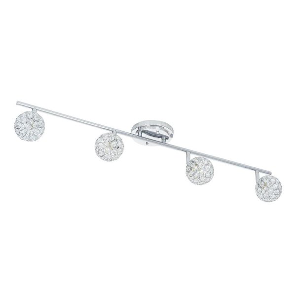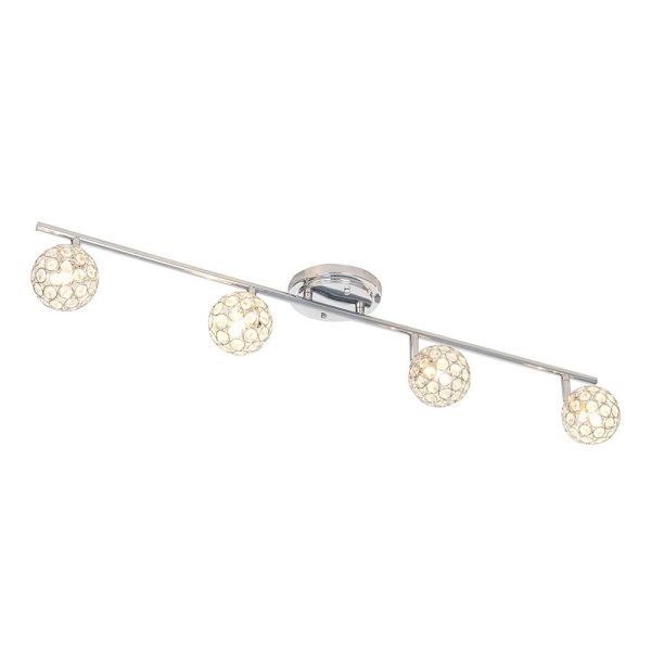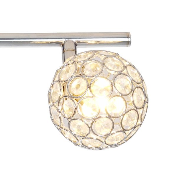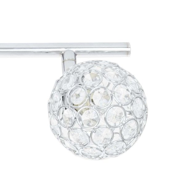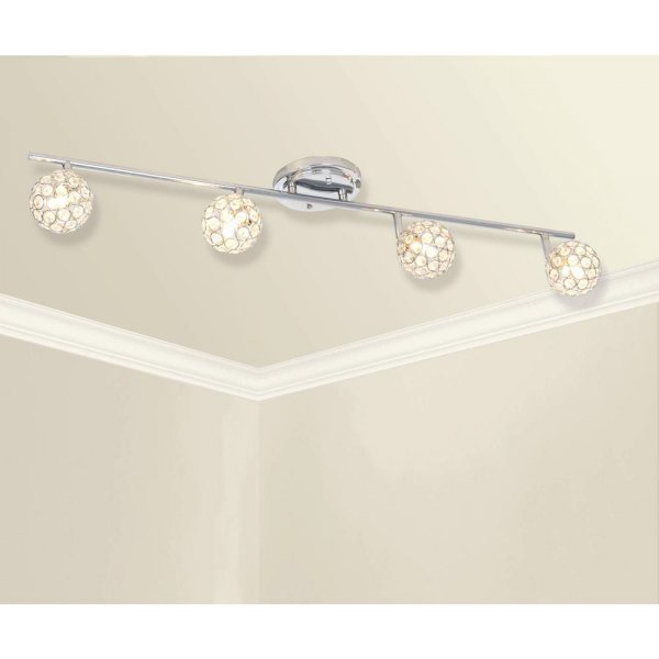 Caged crystal ball design shades add a touch of glamour to the chrome finish of this 4-light fixed track bar light. The elegant look of this modern design will set the mood in any room with soft, ambient light. This modern piece will transform your dining room, kitchen or bathroom, but is also the perfect decorative touch to any room in need of a little refresh. Updating the lighting in your home is the most effective way to accomplish a striking, yet simple, Do It Yourself remodel.