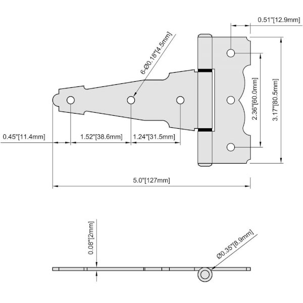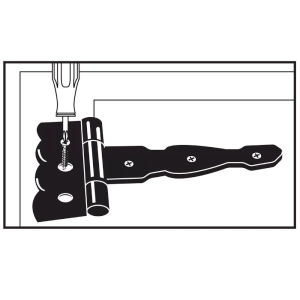 Easily install these Everbilt Heavy Duty Decorative Tee Hinges. They measure 4 in. x 3-2/5 in. and are best used on doors, gates, sheds and tool boxes. The bearing design eliminates metal to metal contact.