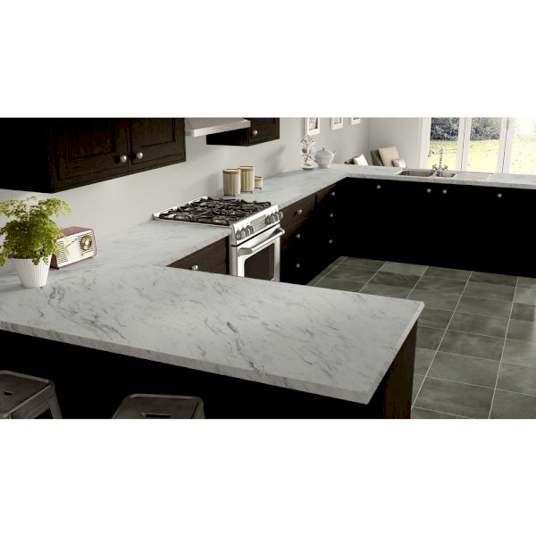 Wilsonart's 60 in. x 144 in. RE-COVER Laminate Sheet in Calcutta Marble is a fun and easy way to update an existing flat surface. With a pre-applied industrial strength adhesive back, Wilsonart RE-COVER can transform a project in three easy steps; clean, apply, and trim. Perfect for adding a new look to desk tops, kids' rooms, furniture, cabinet doors, interior doors, stair risers, and walls (with approved substrate). Apply Wilsonart RE-COVER in both horizontal and vertical applications over existing laminate, melamine, painted or stained wood surfaces, and suitable substrates such as particleboard, medium density fiberboard or cabinet grade plywood.