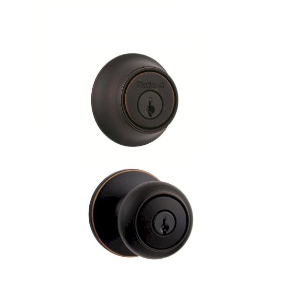 Cove Venetian Bronze Exterior Entry Door Knob and Single Cylinder Deadbolt Combo Pack