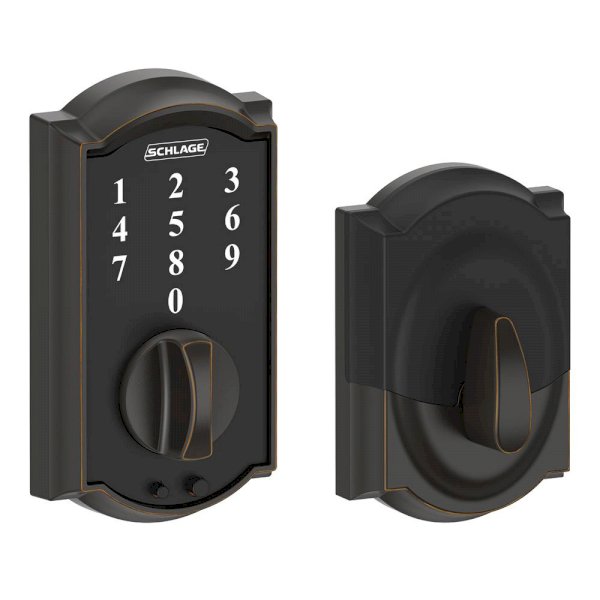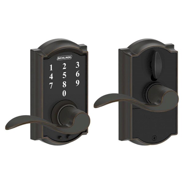 Camelot Aged Bronze Electronic Door Lock with Accent Door Lever